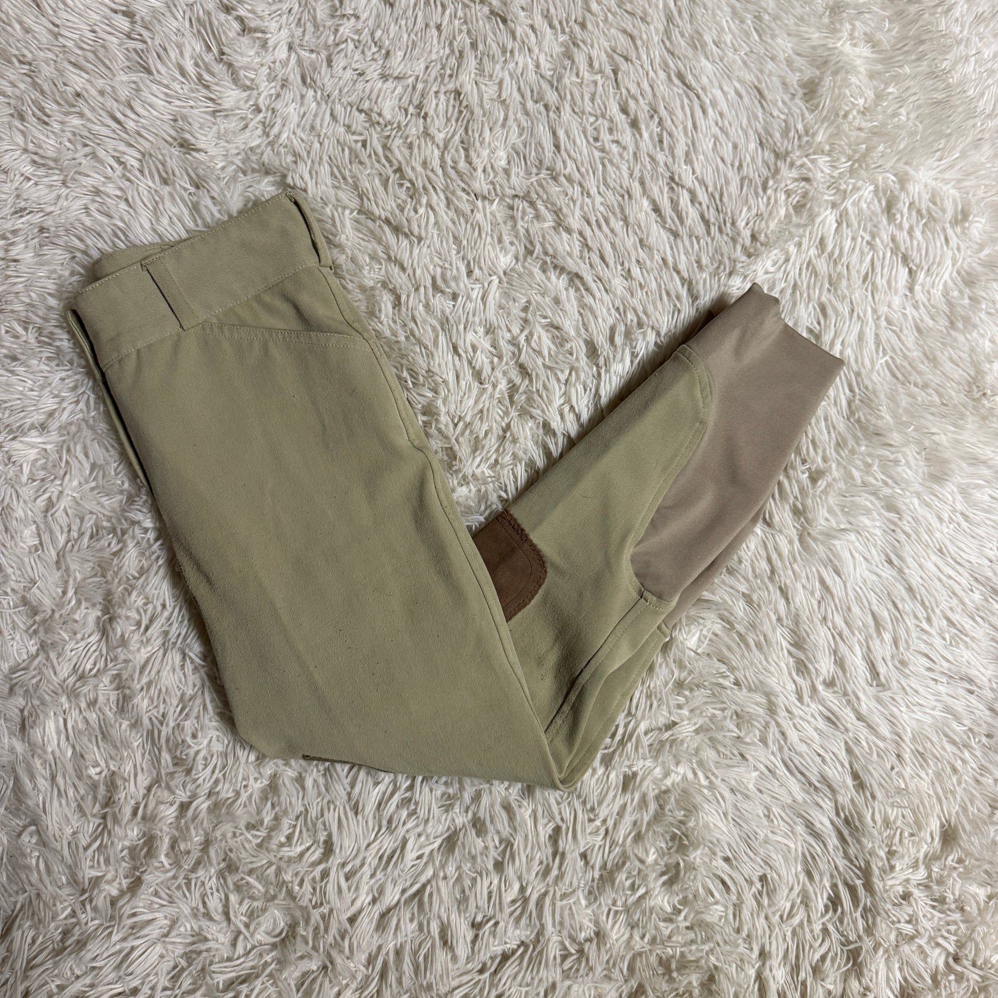 Child’s Size 12R Tan Dover Knee Patch Horseback Riding Breeches. Some pilling shown in photos.