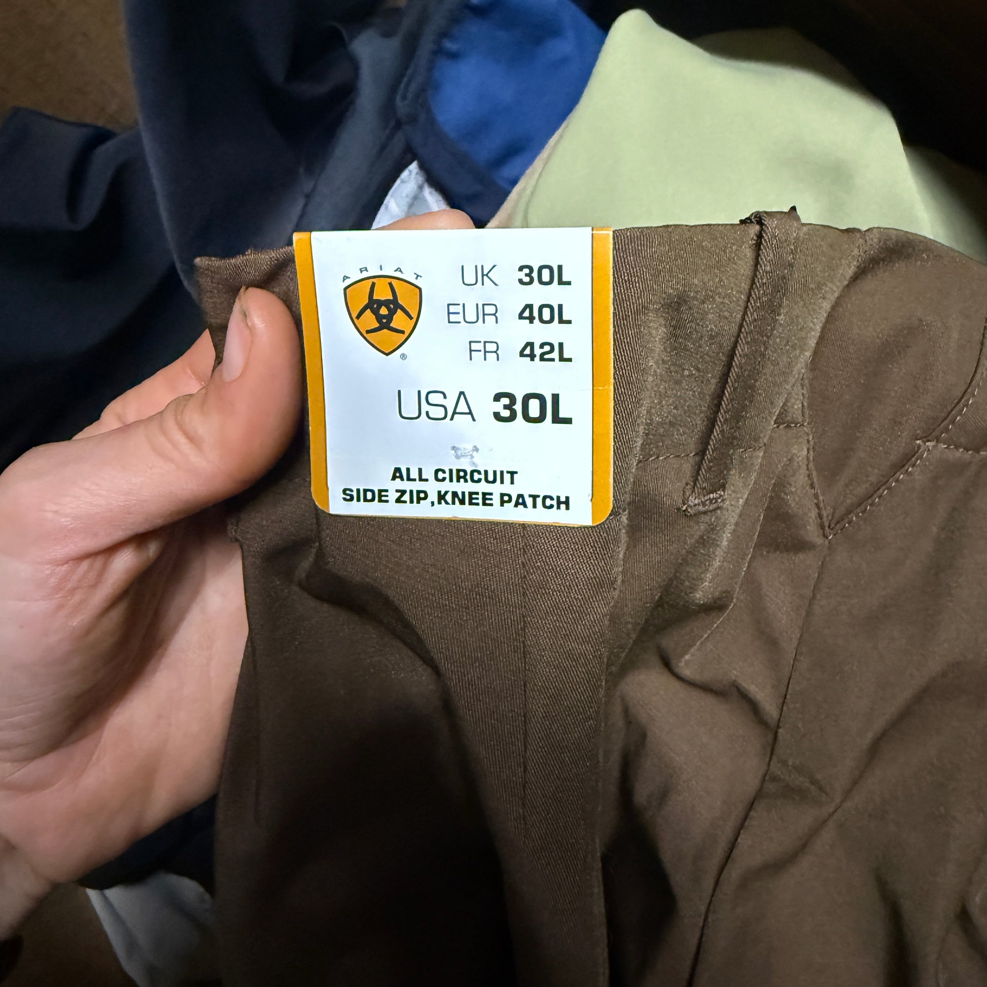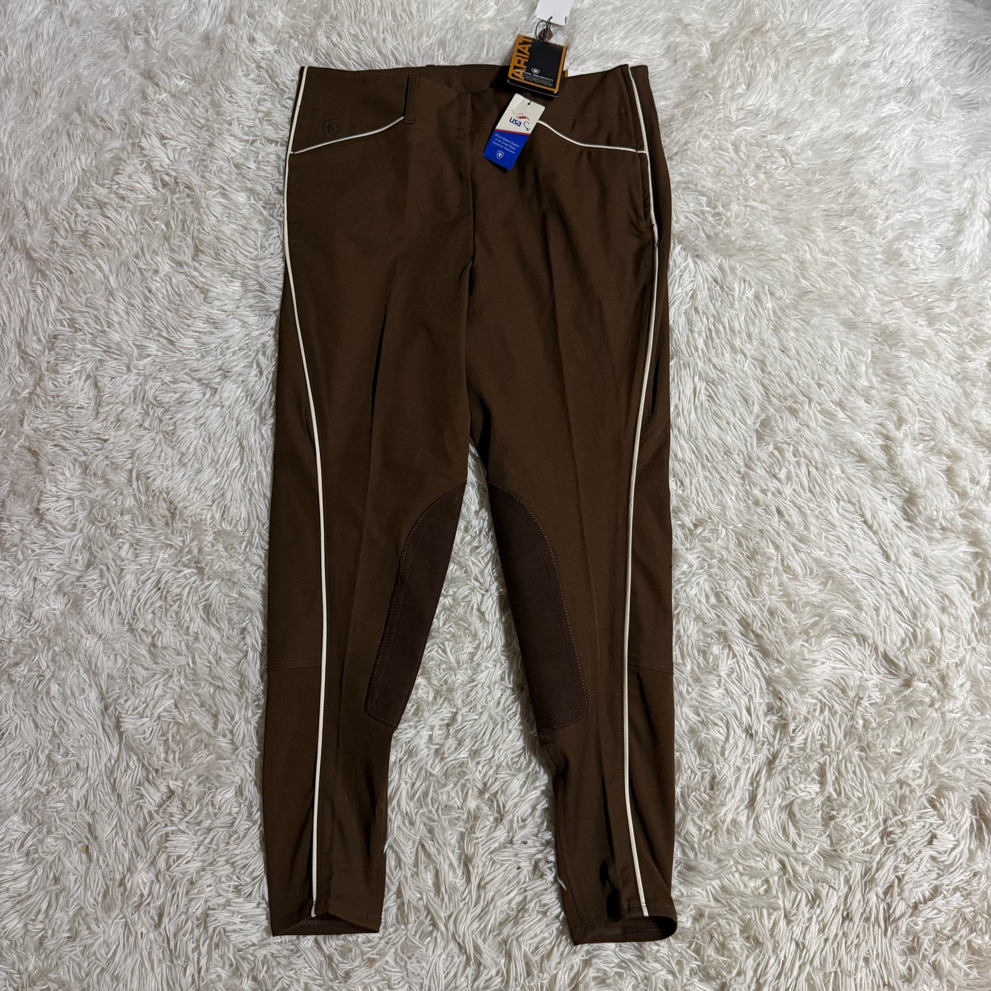 New Women’s Size 30L Brown Ariat Side Zip Knee Patch Horseback Riding Breeches