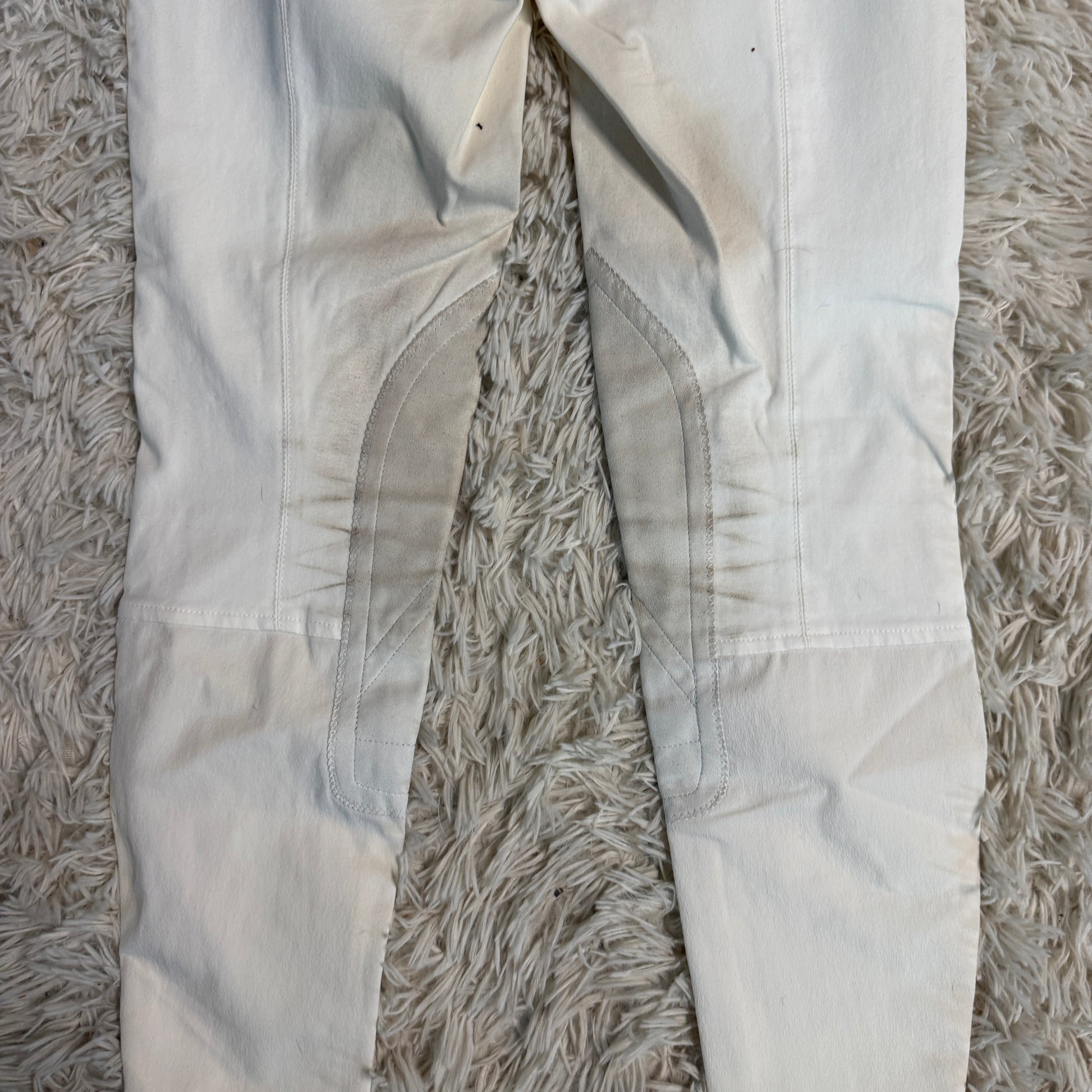 Women’s Size 24R White Ariat Knee Patch Horseback Riding Breeches. Light staining shown in photos.