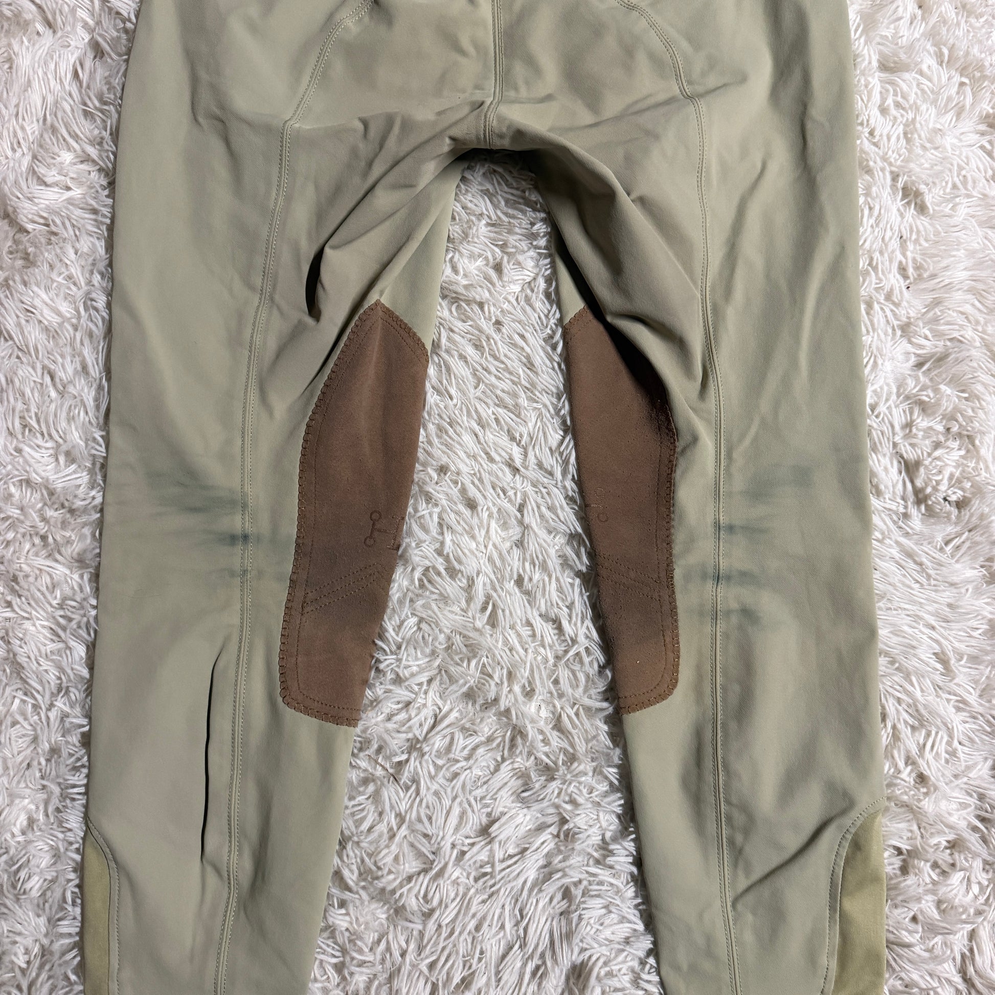 Women’s Size 32L Tan Smartpak Hadley Knee Patch Horseback Riding Breeches. Staining shown in photos.