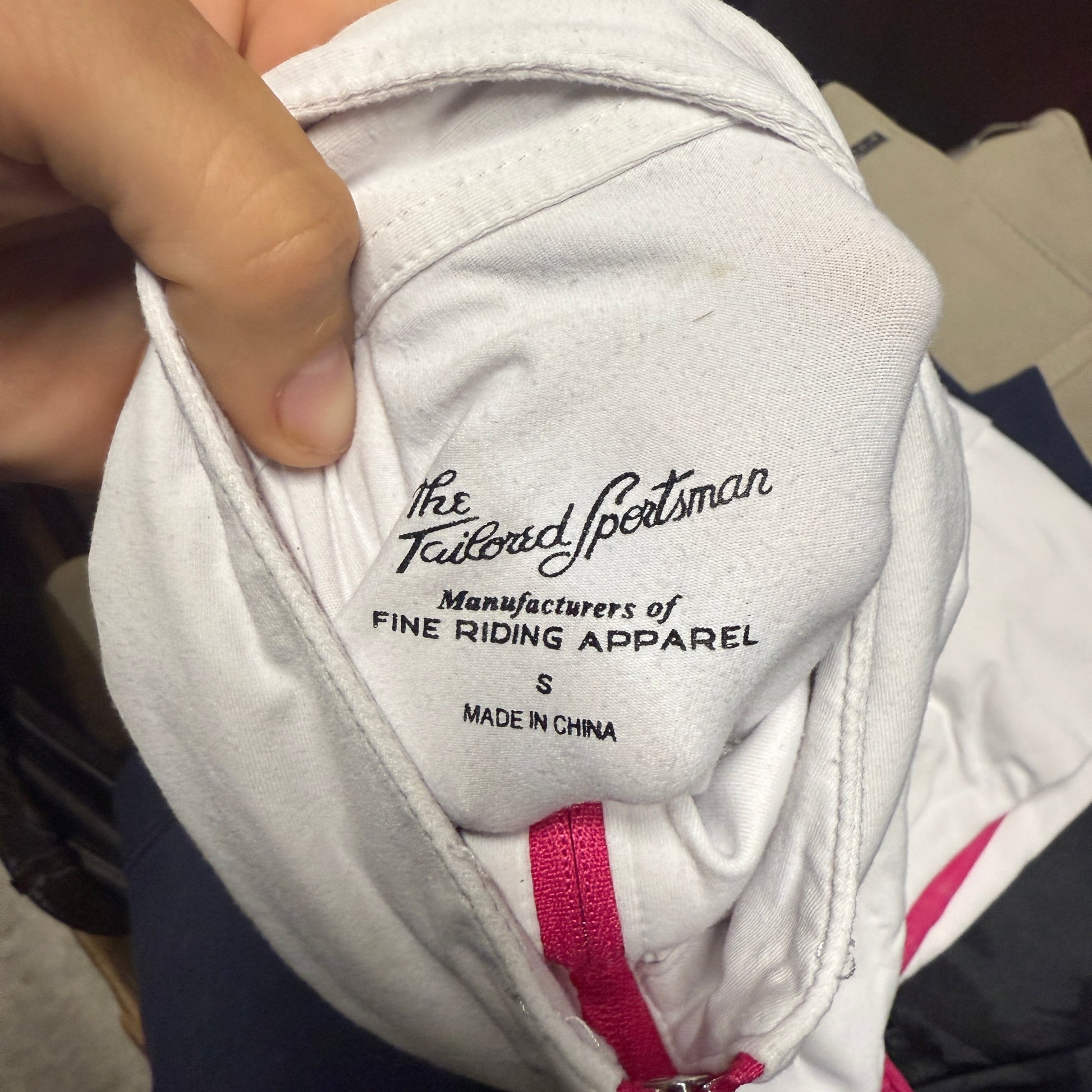Women’s Small White/Pink Tailored Sportsman Long Sleeve Horseback Riding Sunshirt. Good Condition.